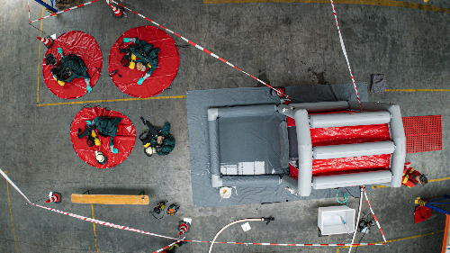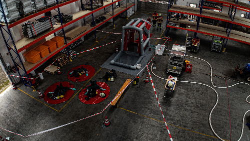 Hierfür führen wir auf dem Abrollbehälter Gefahrgut unter anderem ein Duschzelt mit.